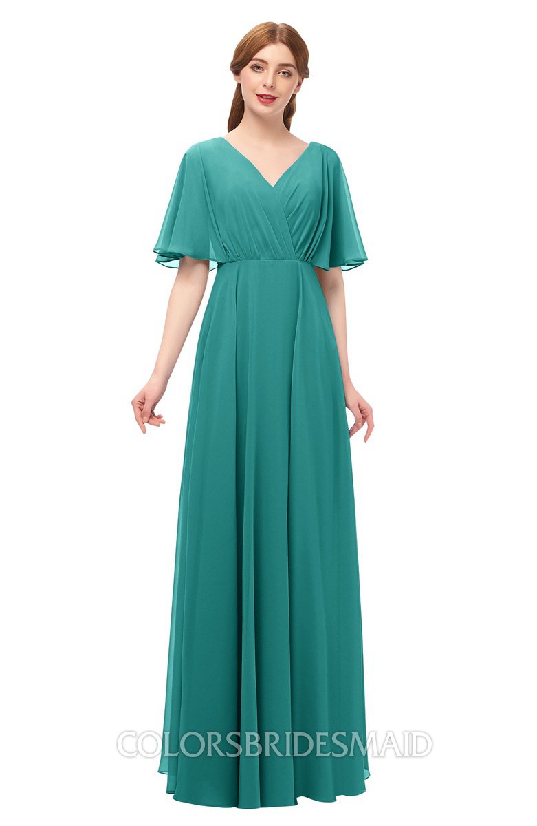 Porcelain Bridesmaid Dresses A-line Short Sleeve Floor Length Sexy Zip up Pleated