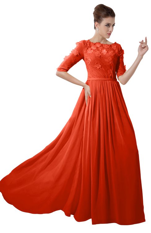 Persimmon Bridesmaid Dresses Boat Flower A-line Elastic Elbow Length Sleeve Hawaiian