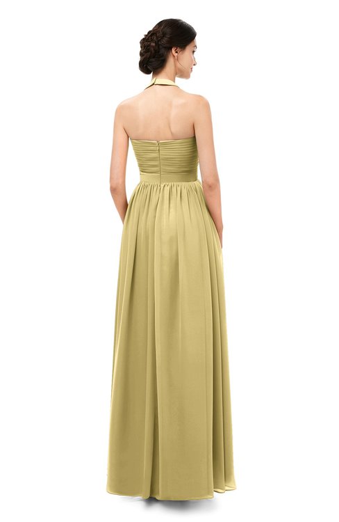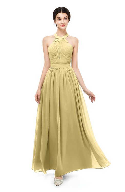 Gold Bridesmaid Dresses Floor Length Illusion Sleeveless Ruching Romantic A-line
