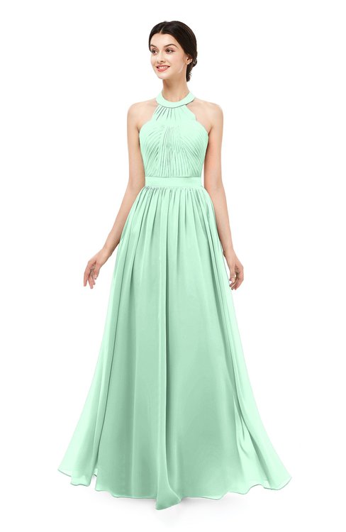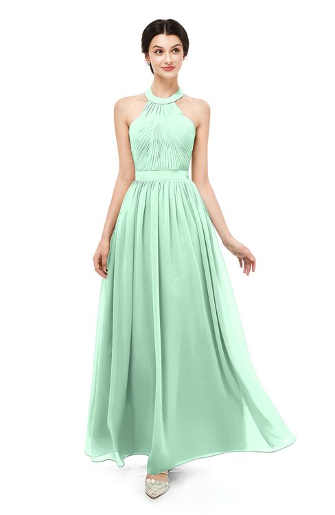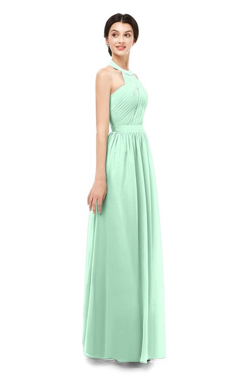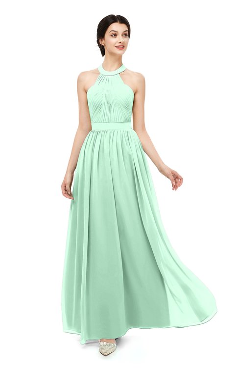 Honeydew Bridesmaid Dresses Floor Length Illusion Sleeveless Ruching Romantic A-line