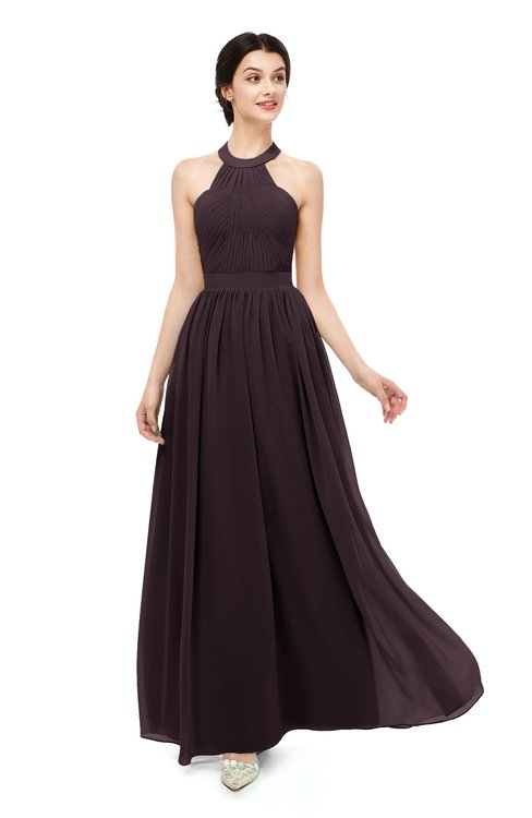 Italian Plum Bridesmaid Dresses Floor Length Illusion Sleeveless Ruching Romantic A-line