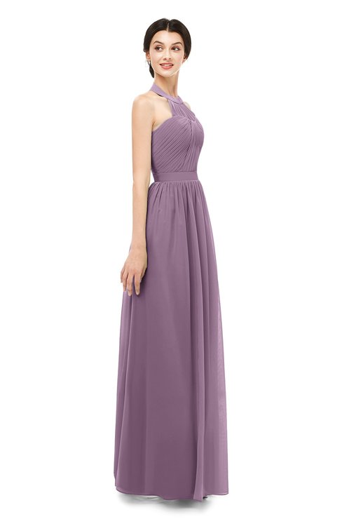 Mauve Bridesmaid Dresses Floor Length Illusion Sleeveless Ruching Romantic A-line