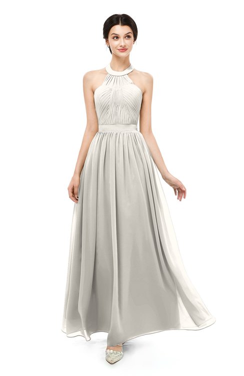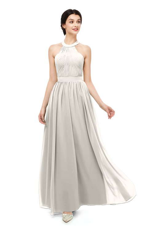 Off White Bridesmaid Dresses Floor Length Illusion Sleeveless Ruching Romantic A-line