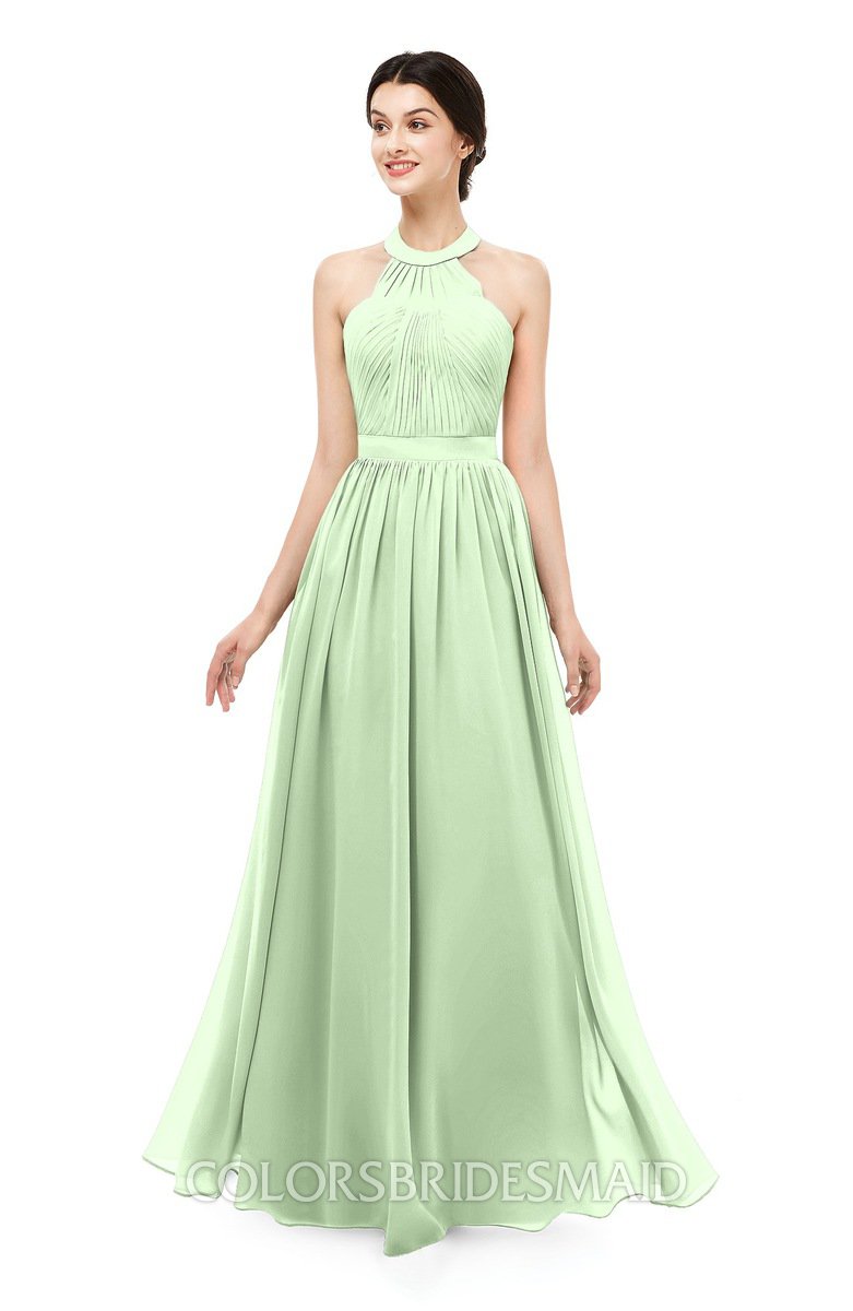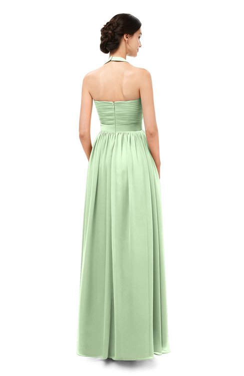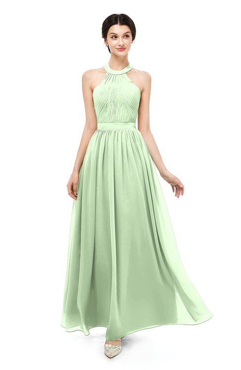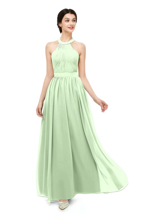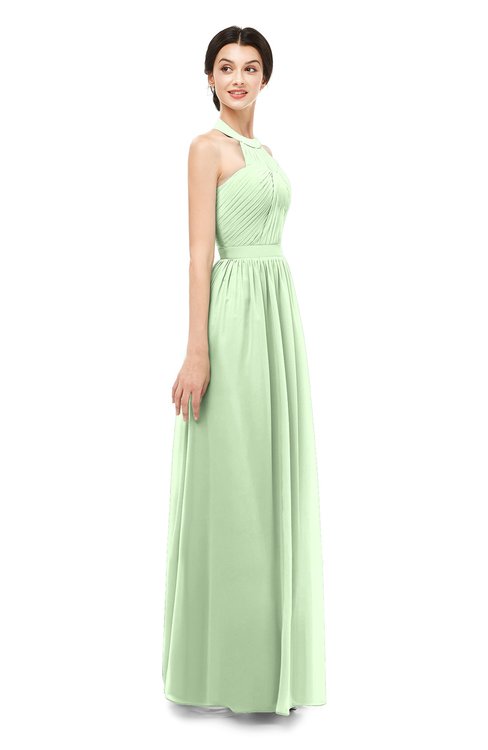 Pale Green Bridesmaid Dresses Floor Length Illusion Sleeveless Ruching Romantic A-line