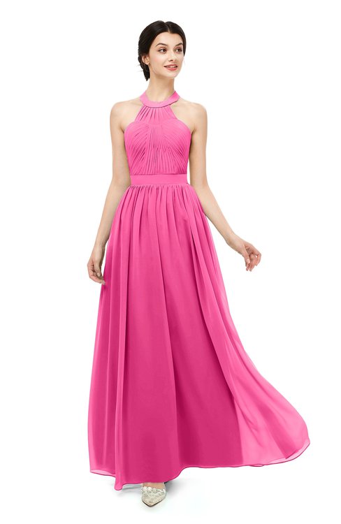 Rose Pink Bridesmaid Dresses Floor Length Illusion Sleeveless Ruching Romantic A-line