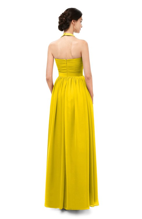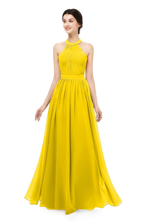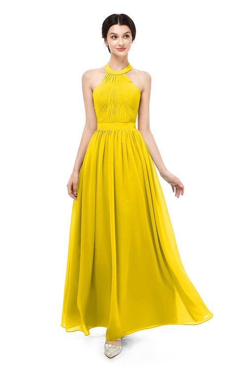 Yellow Bridesmaid Dresses Floor Length Illusion Sleeveless Ruching Romantic A-line