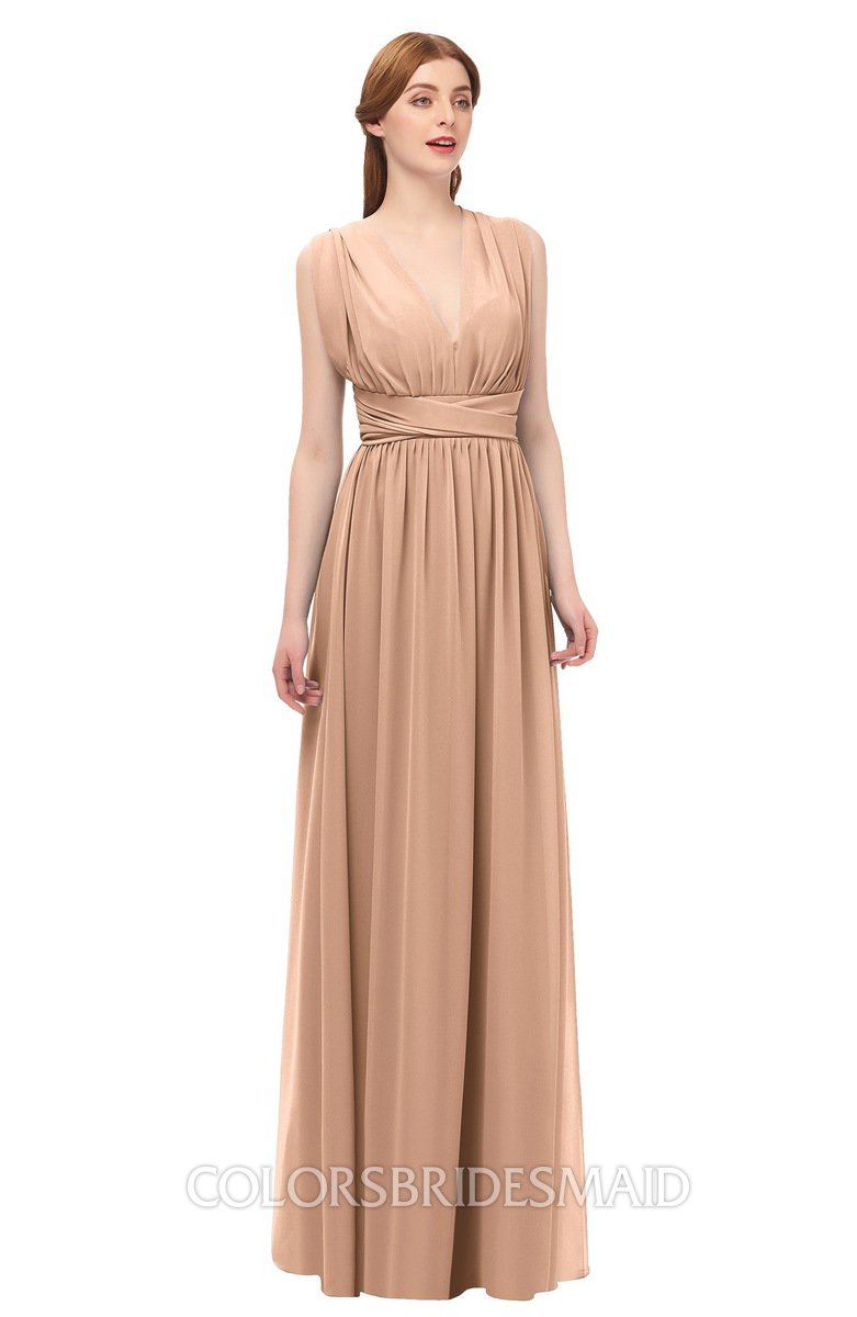 Almost Apricot Bridesmaid Dresses Floor Length V-neck A-line Sleeveless Sexy Zip up