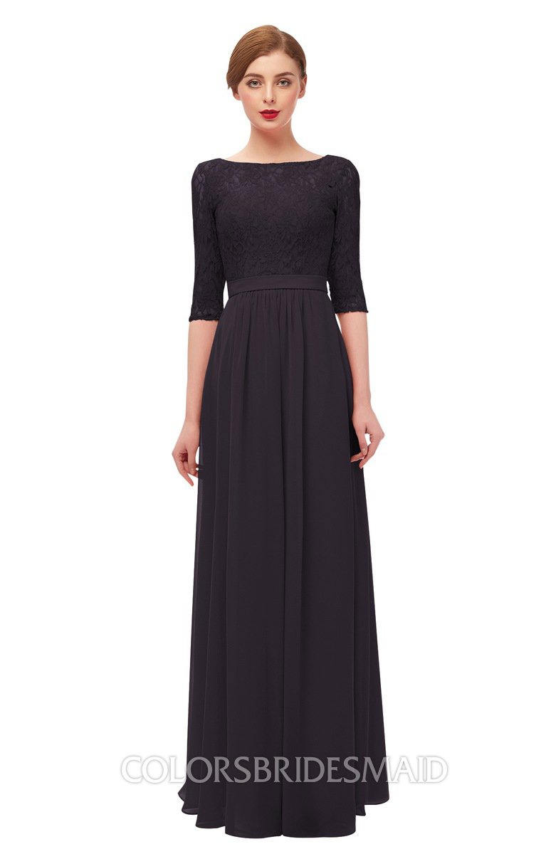 Perfect Plum Bridesmaid Dresses Lace Antique Zipper Boat Floor Length Half Length Sleeve