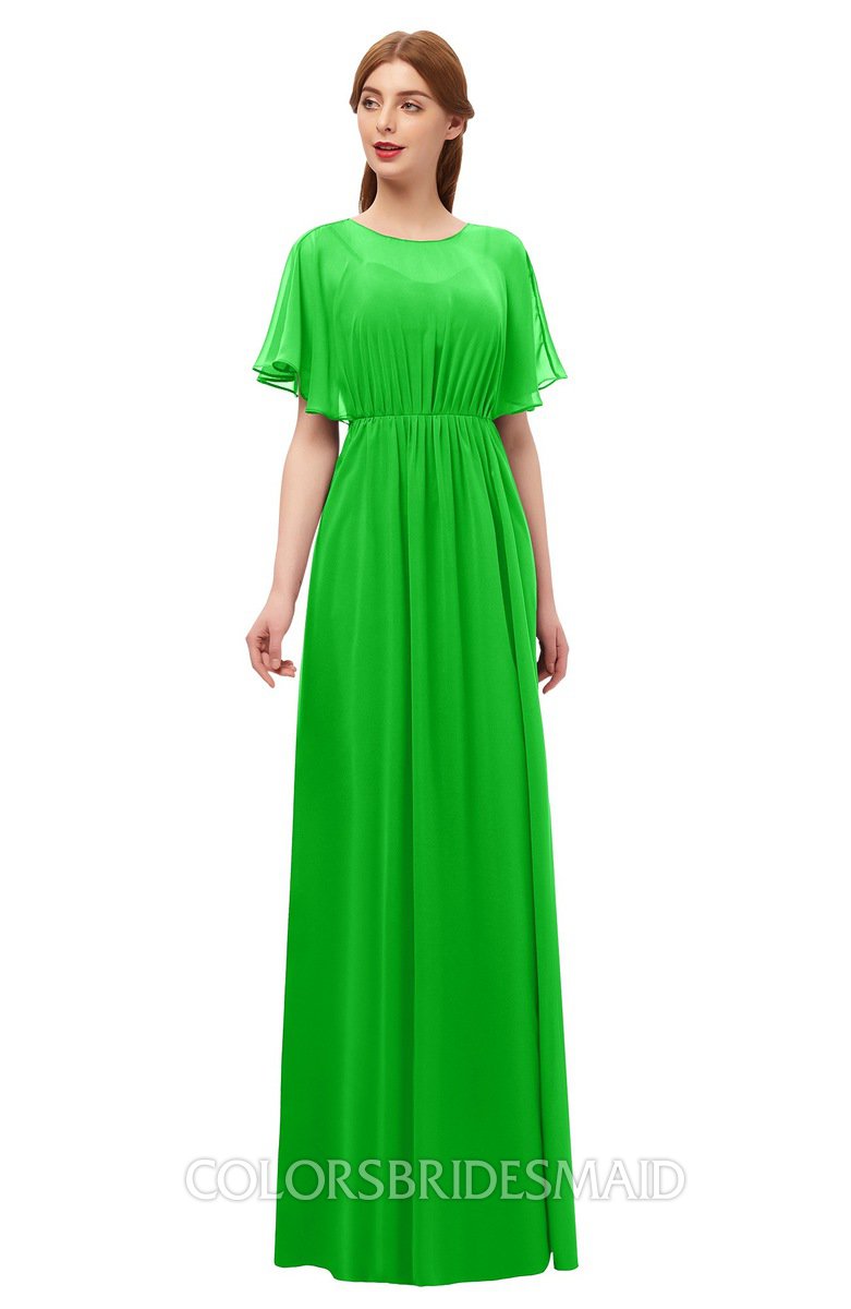 Classic Green Bridesmaid Dresses Pleated Modern Jewel Short Sleeve Lace up Floor Length