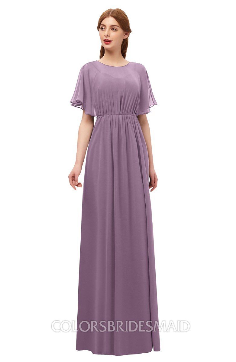 Valerian Bridesmaid Dresses Pleated Modern Jewel Short Sleeve Lace up Floor Length