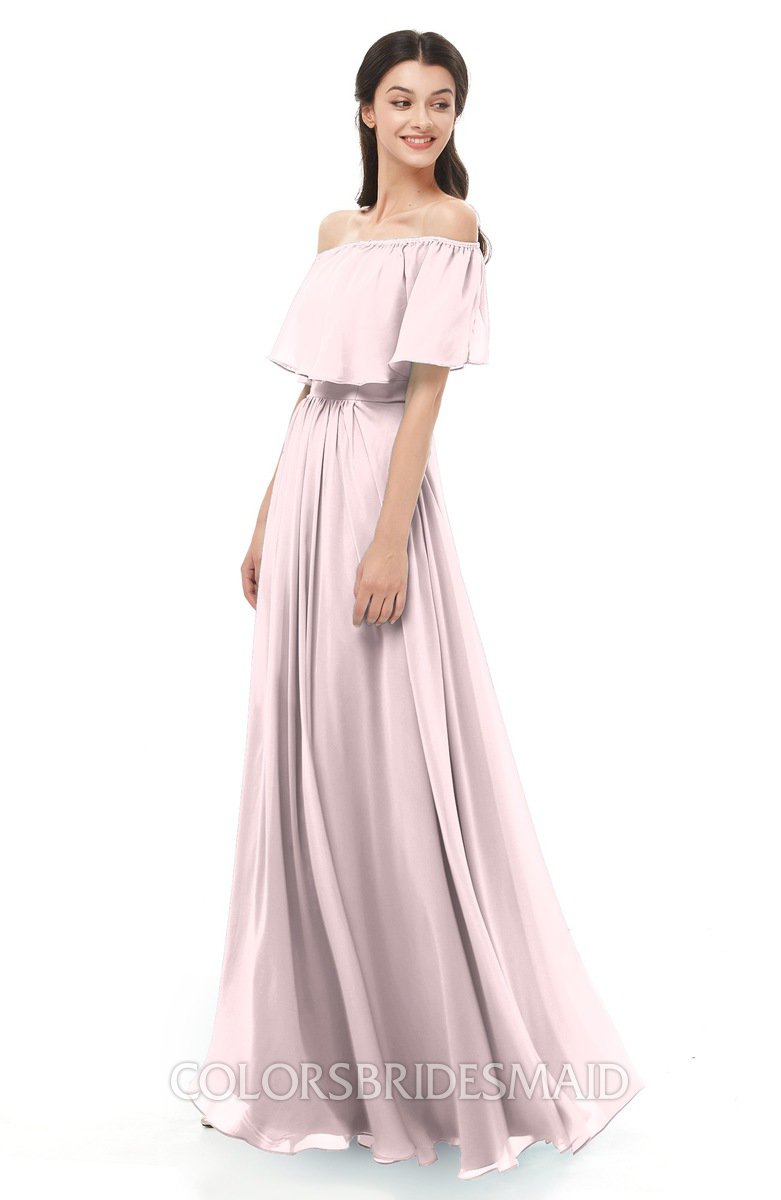 Petal Pink Bridesmaid Dresses Romantic Short Sleeve Floor Length Pleated A-line Off The Shoulder