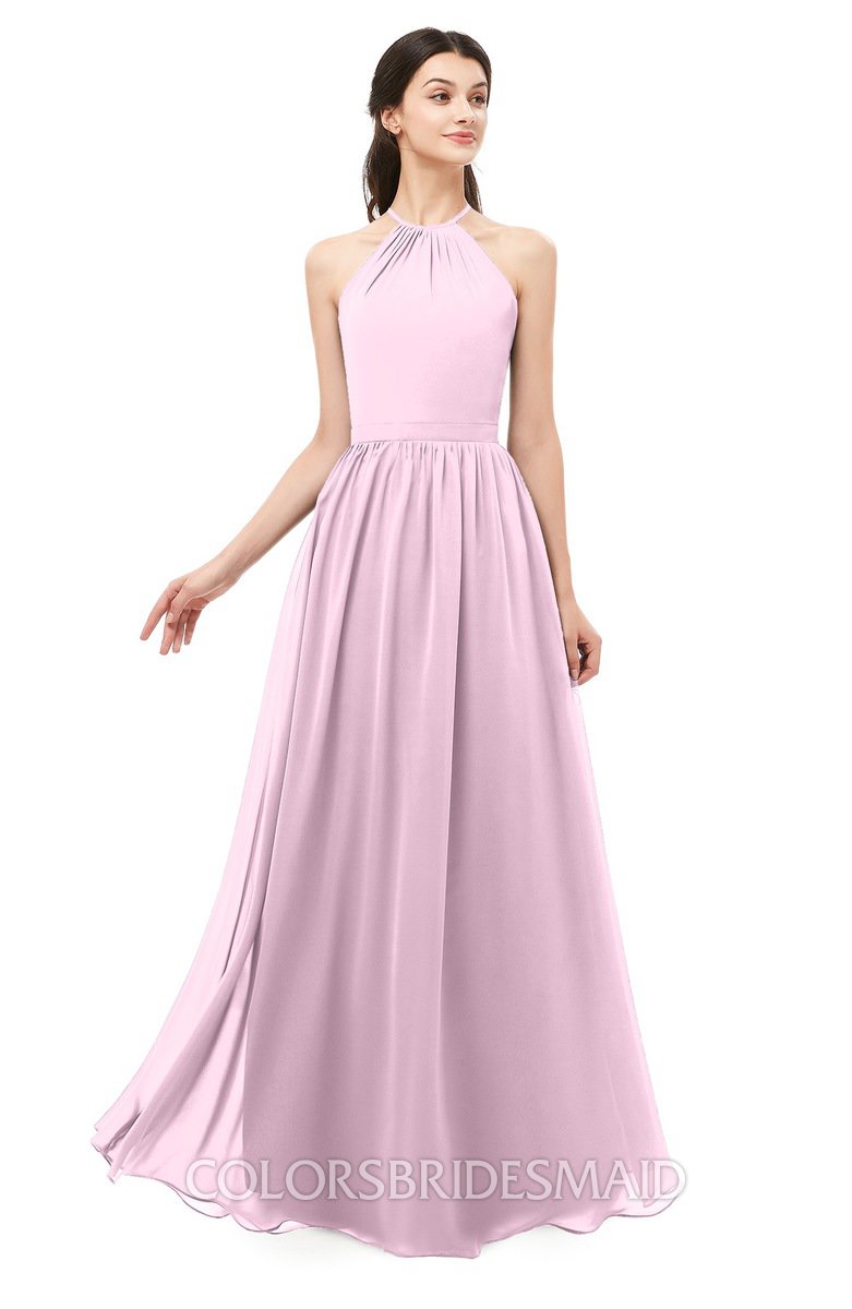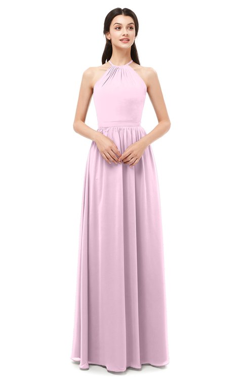 Baby Pink Bridesmaid Dresses Sleeveless Halter Criss-cross Straps Sexy A-line Sash
