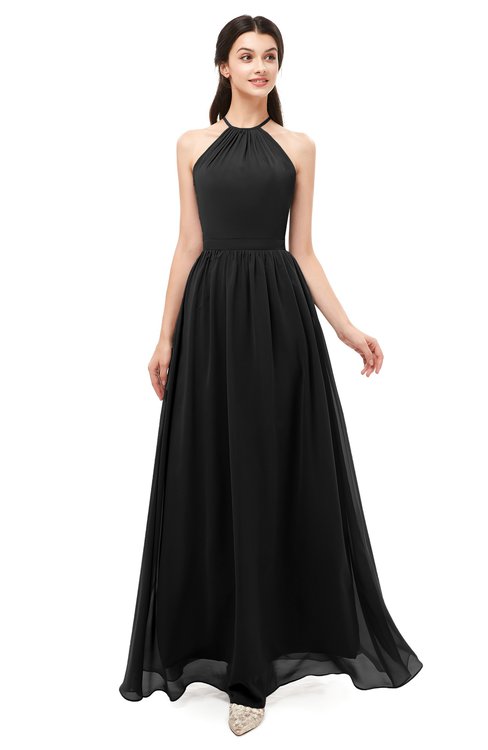 Black Bridesmaid Dresses Sleeveless Halter Criss-cross Straps Sexy A-line Sash