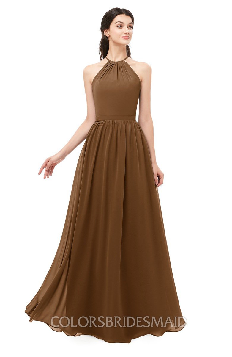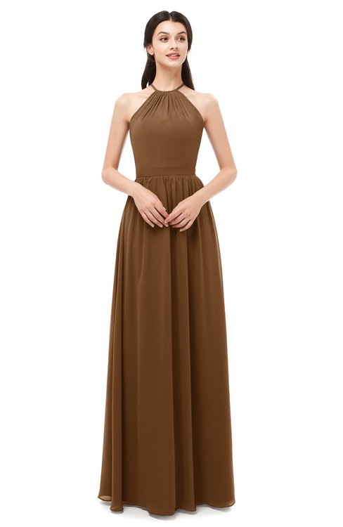Brown Bridesmaid Dresses Sleeveless Halter Criss-cross Straps Sexy A-line Sash