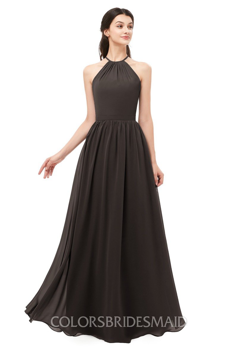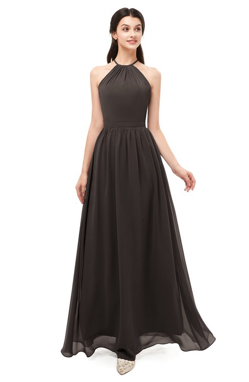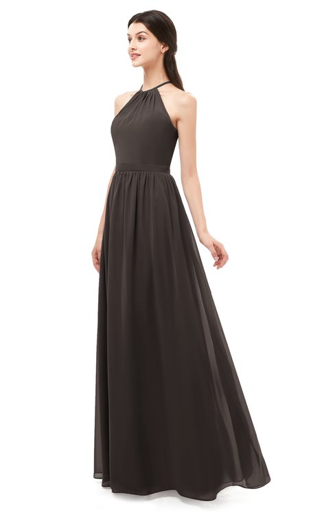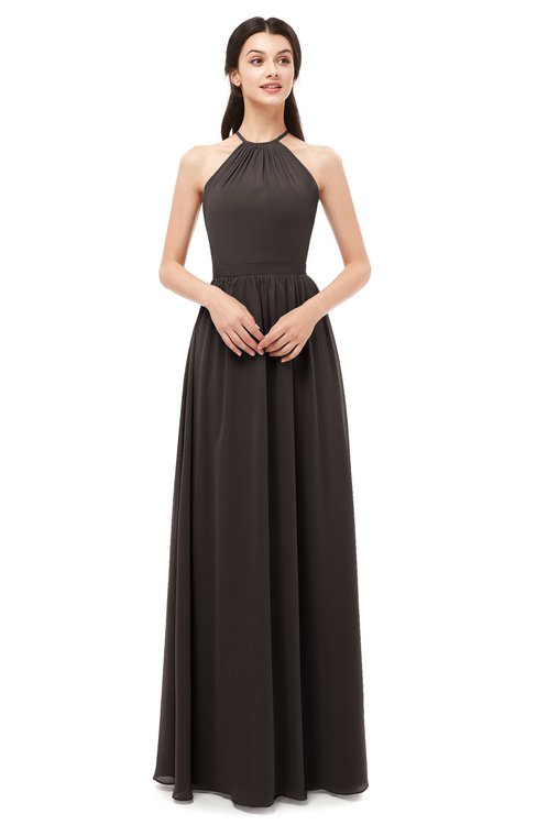 Fudge Brown Bridesmaid Dresses Sleeveless Halter Criss-cross Straps Sexy A-line Sash