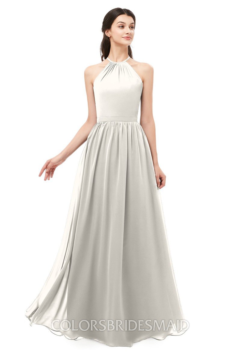 Off White Bridesmaid Dresses Sleeveless Halter Criss-cross Straps Sexy A-line Sash