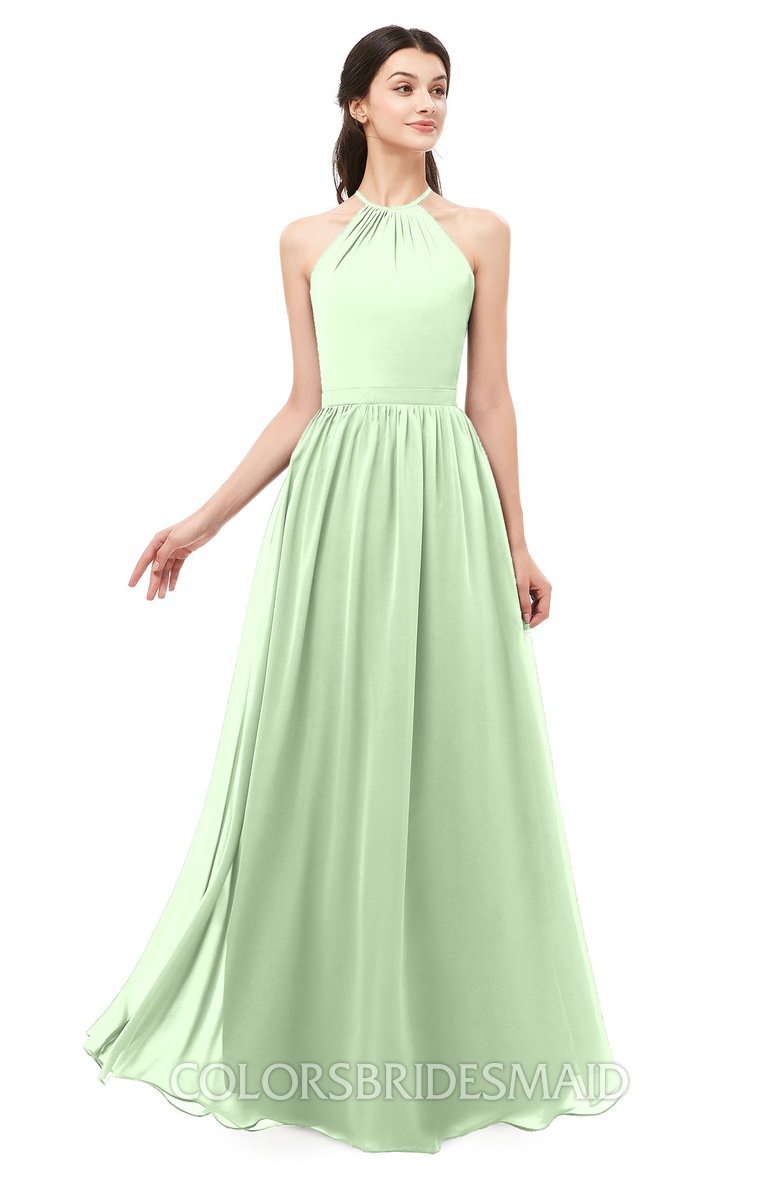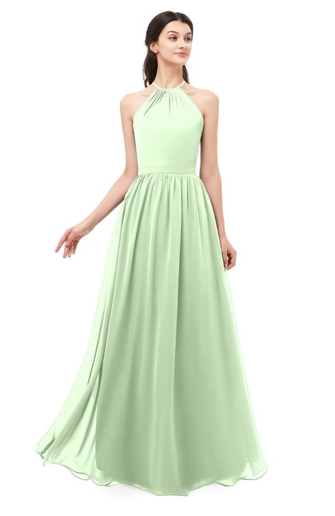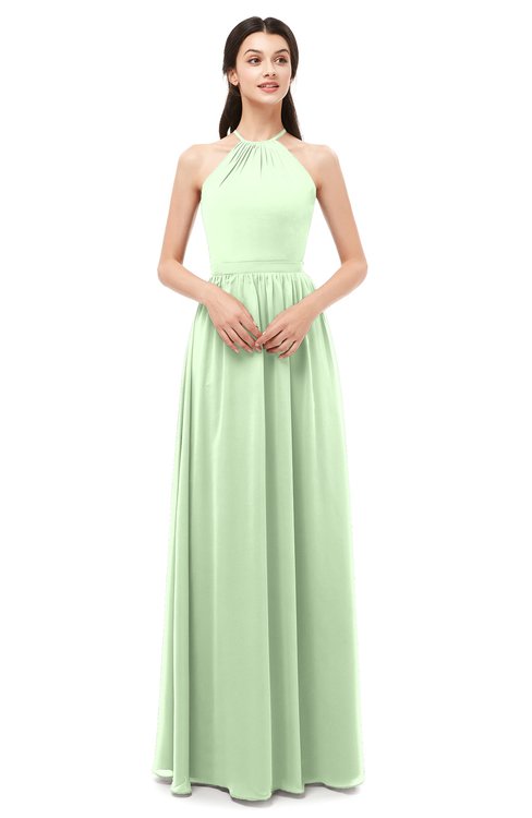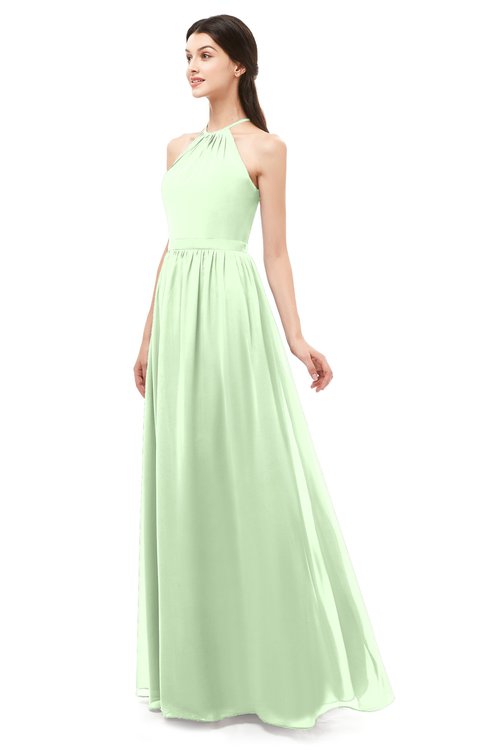 Pale Green Bridesmaid Dresses Sleeveless Halter Criss-cross Straps Sexy A-line Sash
