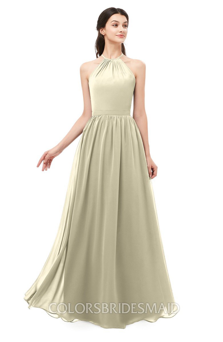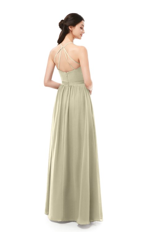 Putty Bridesmaid Dresses Sleeveless Halter Criss-cross Straps Sexy A-line Sash