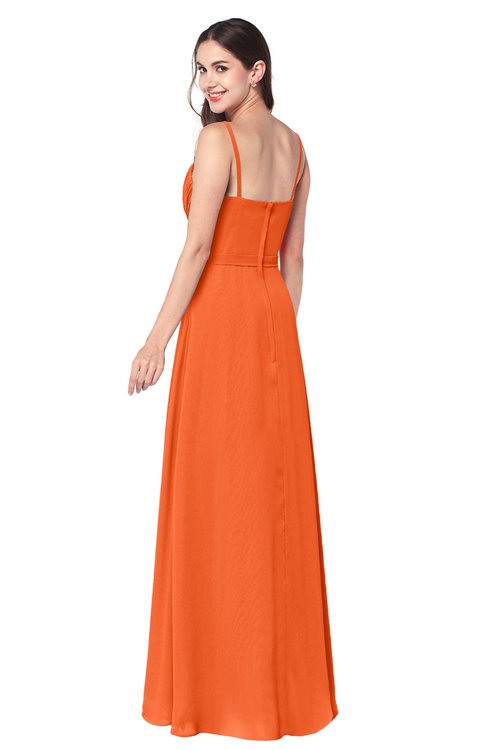 Tangerine Bridesmaid Dresses Sleeveless Sexy Half Backless Pleated A-line Floor Length