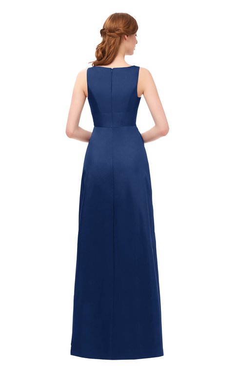 Dark Blue Bridesmaid Dresses Sleeveless Sexy Zipper V-neck Floor Length Pleated