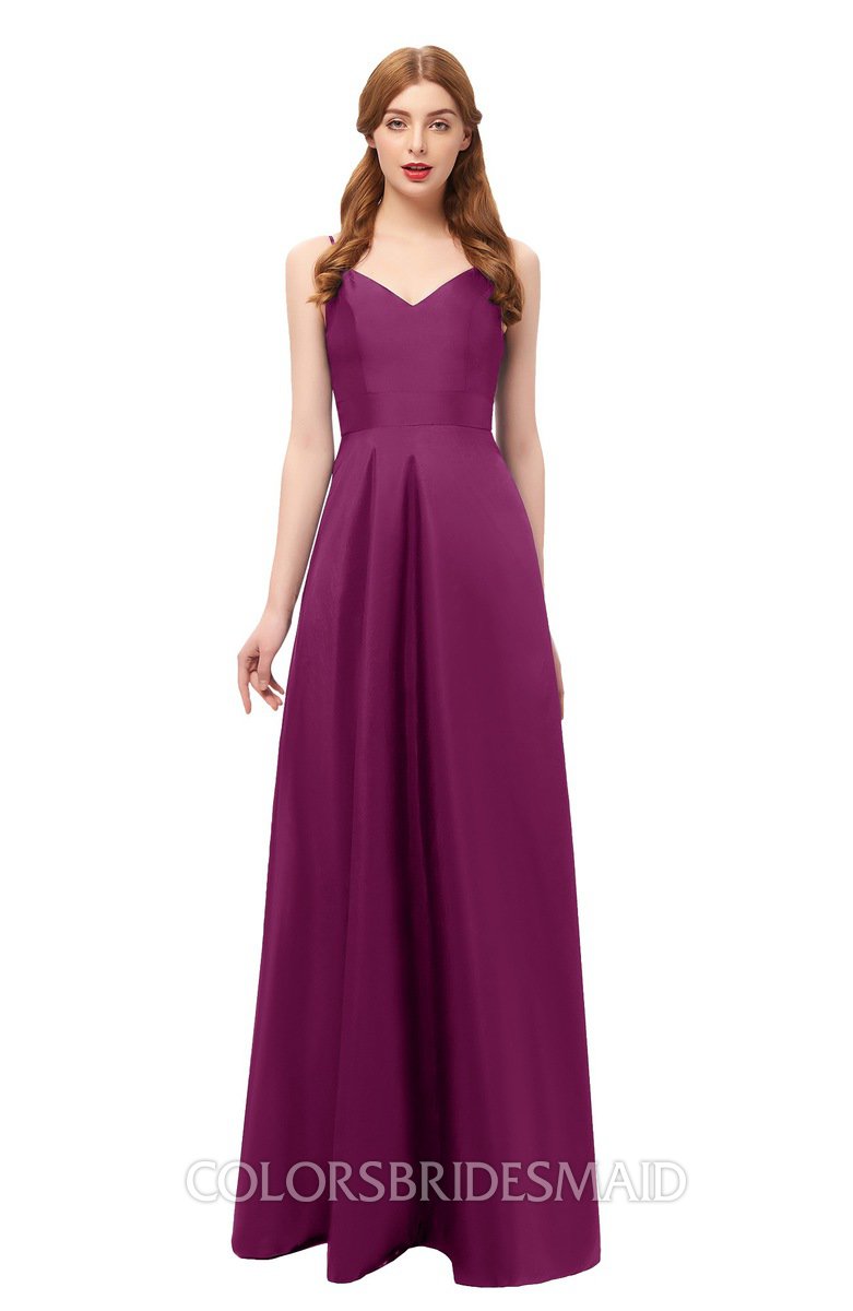 Magenta Purple Bridesmaid Dresses V-neck Sleeveless A-line Criss-cross Straps Sash Classic