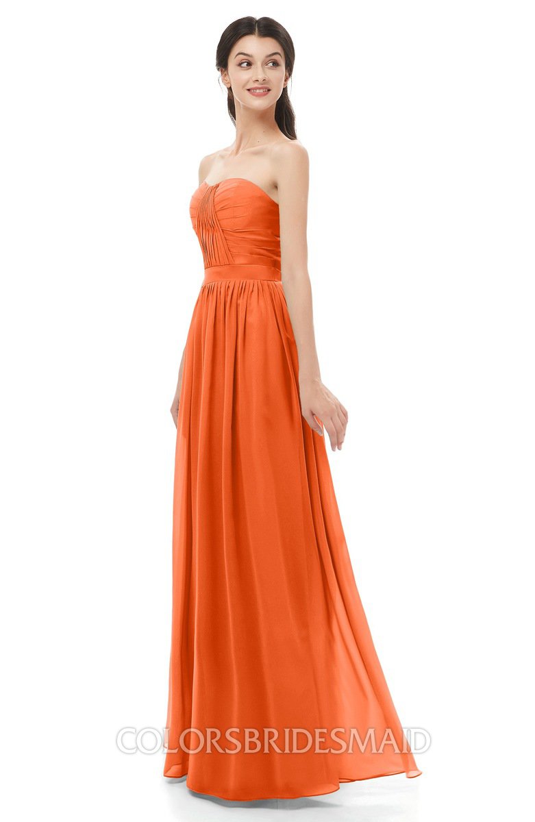 Tangerine Bridesmaid Dresses Zip up A-line Floor Length Sleeveless Simple Sweetheart