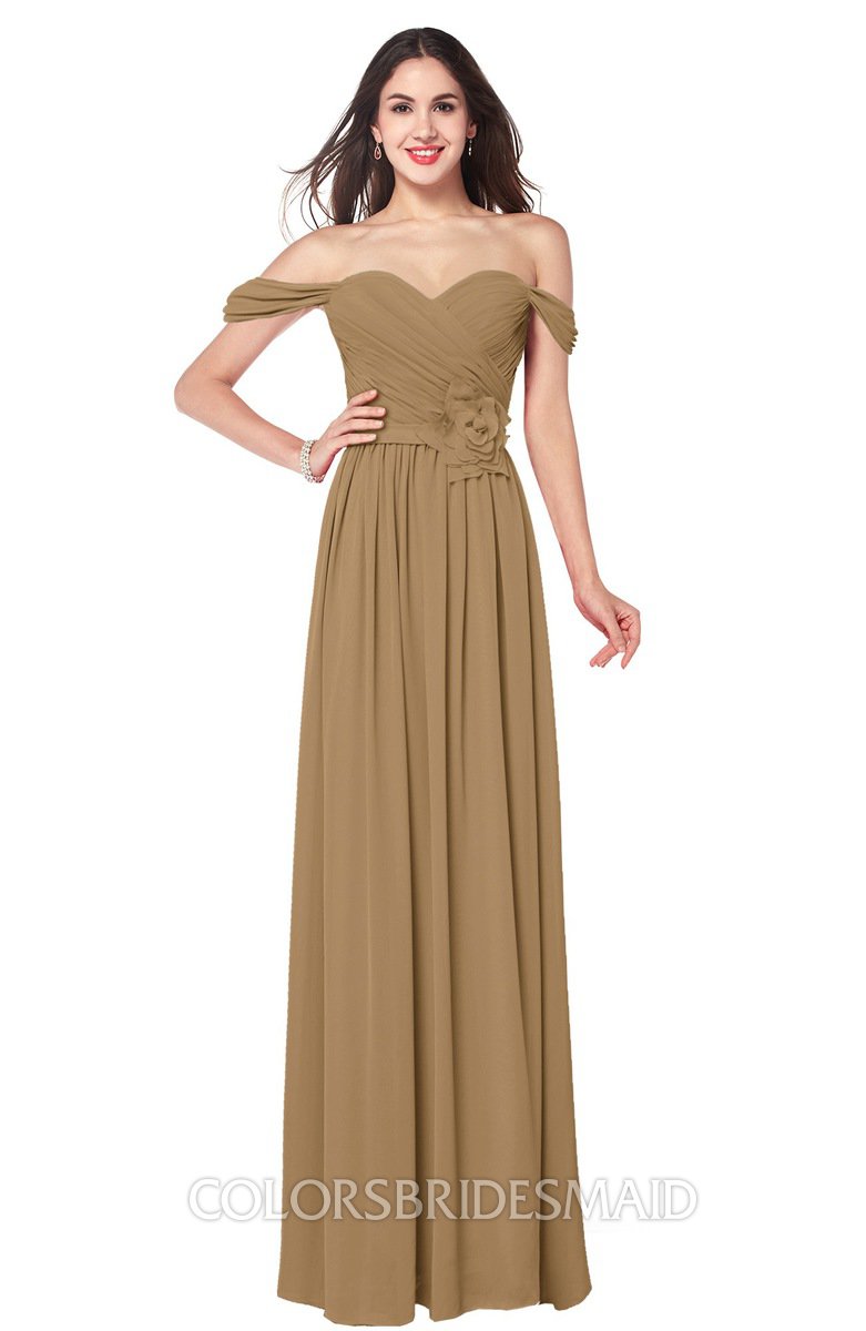 Indian Tan Bridesmaid Dresses Zip up A-line Floor Length Sweetheart Short Sleeve Gorgeous