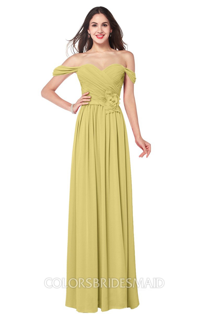 Misted Yellow Bridesmaid Dresses Zip up A-line Floor Length Sweetheart Short Sleeve Gorgeous