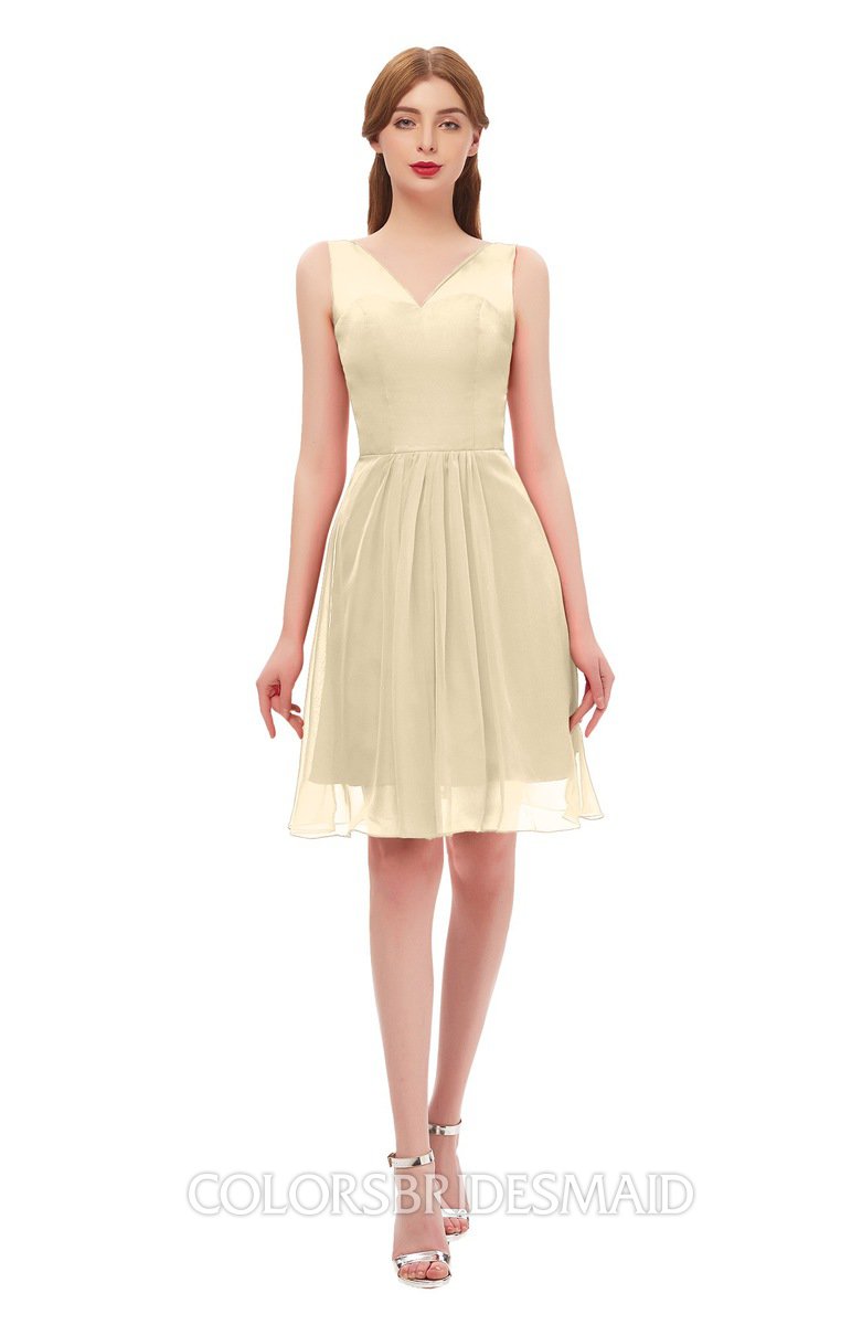 Navajo Bridesmaid Dresses Zip up Knee Length Cute Sleeveless V-neck Ruching