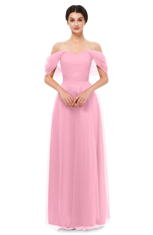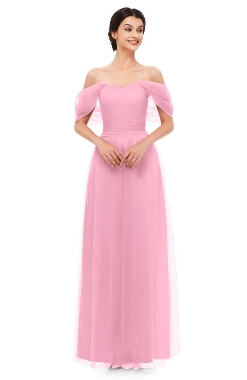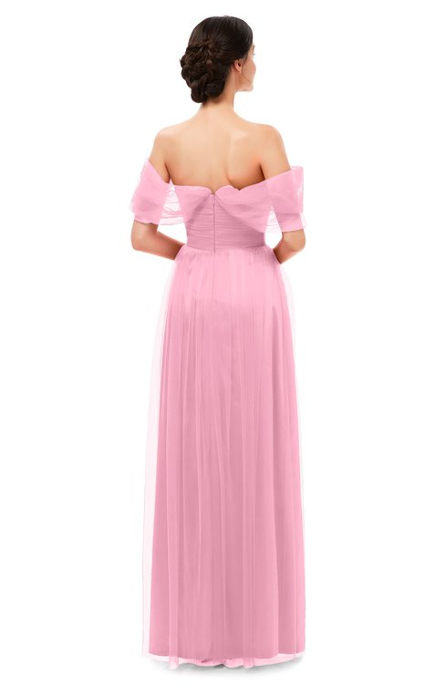 Begonia Pink Bridesmaid Dresses Zip up Off The Shoulder Sexy Floor Length Short Sleeve A-line