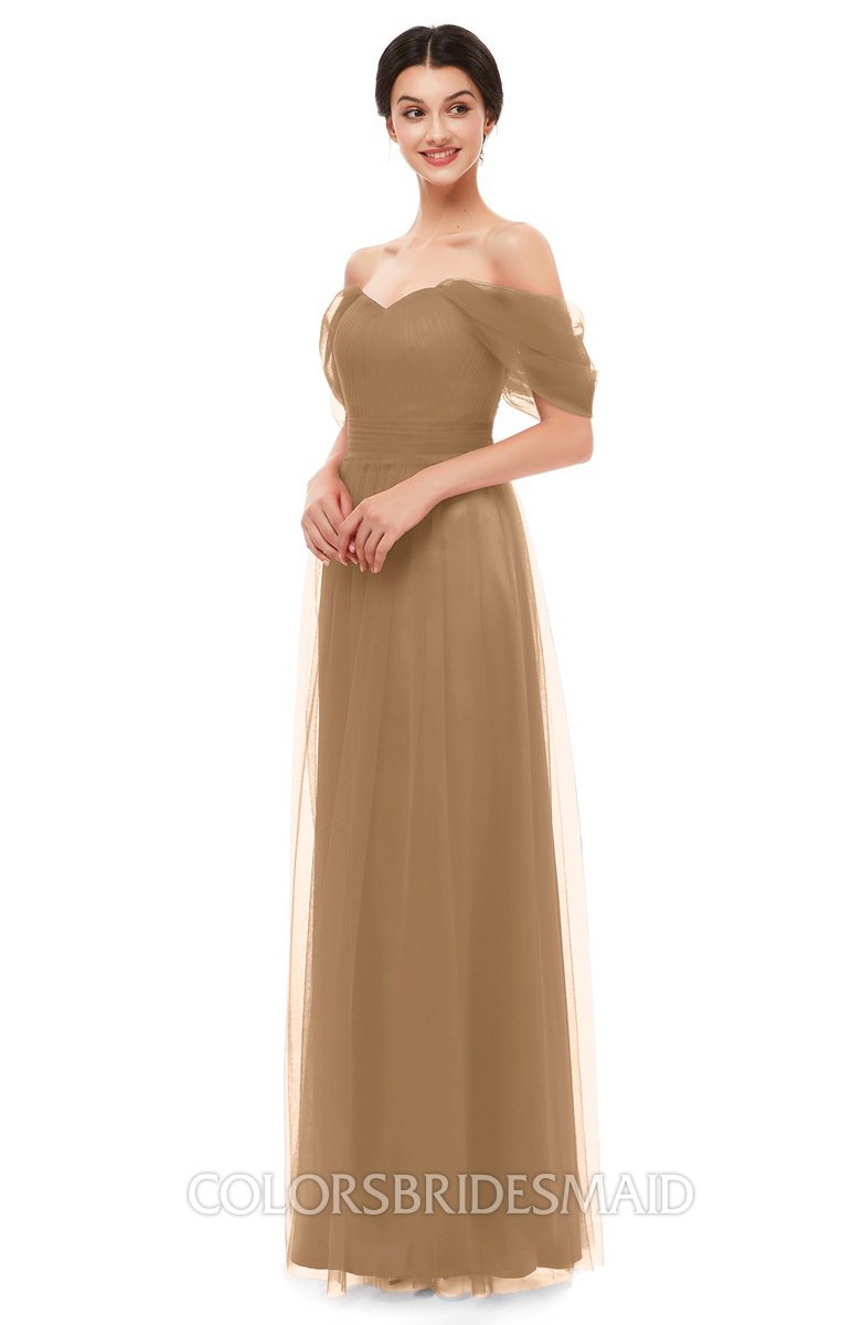 Indian Tan Bridesmaid Dresses Zip up Off The Shoulder Sexy Floor Length Short Sleeve A-line