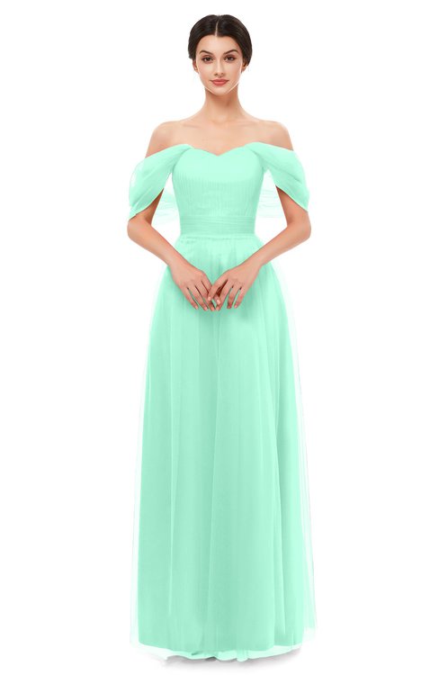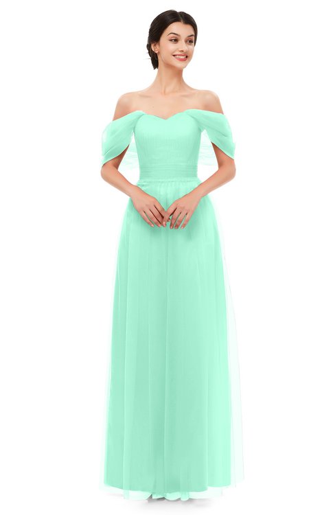 Pastel Green Bridesmaid Dresses Zip up Off The Shoulder Sexy Floor Length Short Sleeve A-line