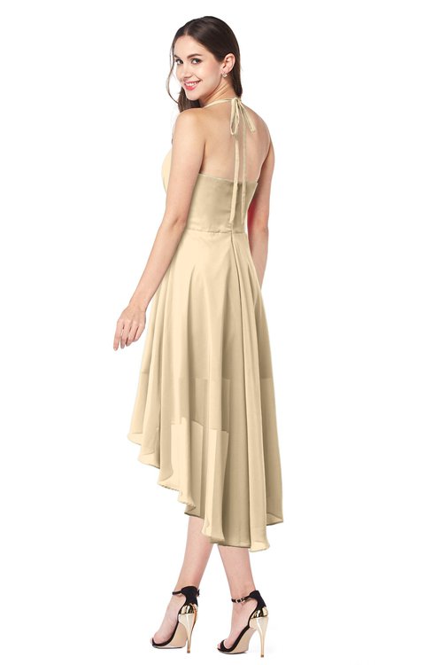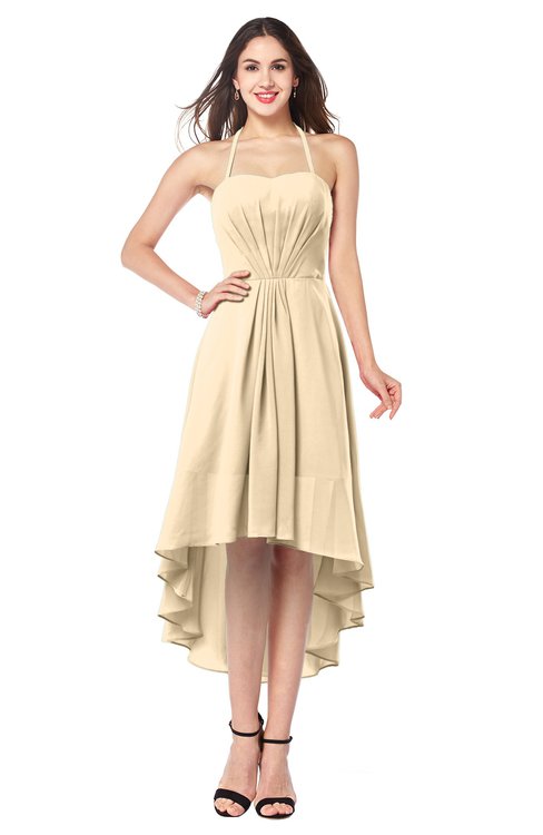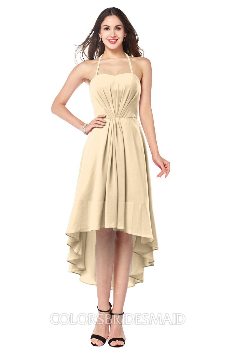 Apricot Gelato Casual A-line Halter Half Backless Asymmetric Ruching Plus Size Bridesmaid Dresses