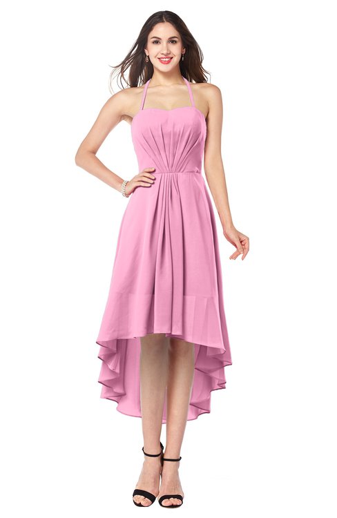 Pink Casual A-line Halter Half Backless Asymmetric Ruching Plus Size Bridesmaid Dresses