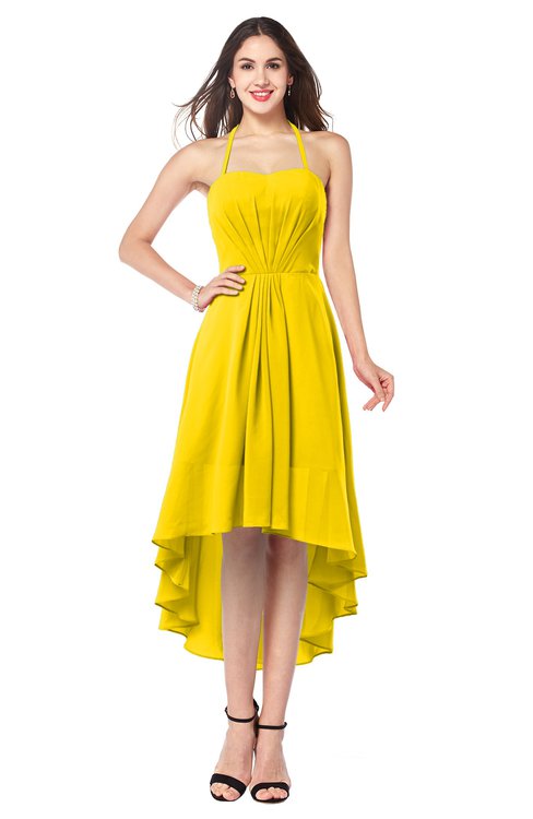 Yellow Casual A-line Halter Half Backless Asymmetric Ruching Plus Size Bridesmaid Dresses