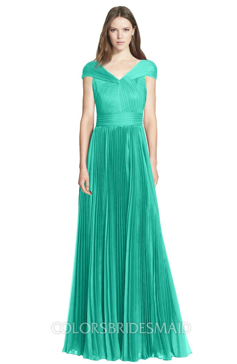Viridian Green Classic Fit-n-Flare V-neck Short Sleeve Zip up Chiffon Bridesmaid Dresses