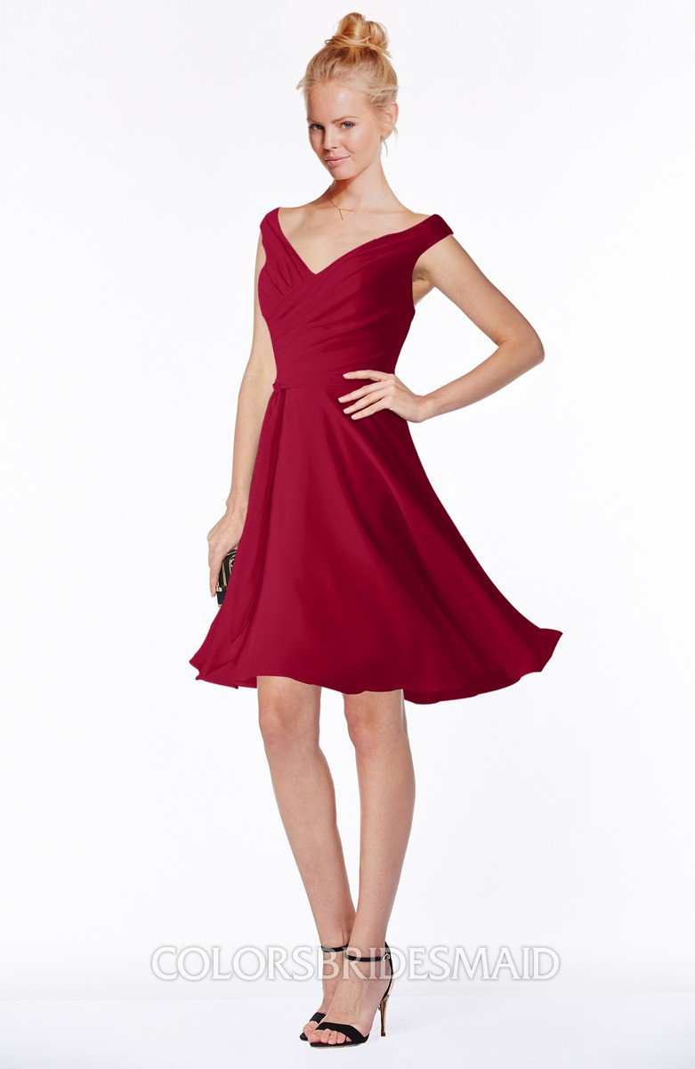 Maroon Classic Fit-n-Flare Zip up Chiffon Knee Length Ruching Bridesmaid Dresses