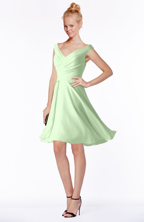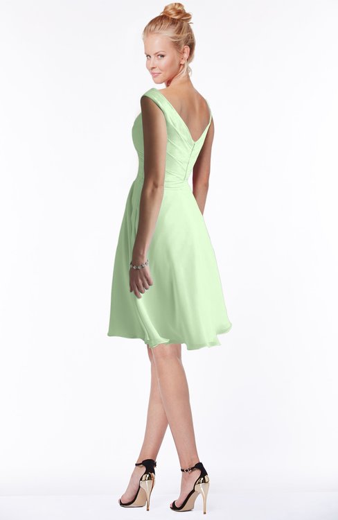 Pale Green Classic Fit-n-Flare Zip up Chiffon Knee Length Ruching Bridesmaid Dresses