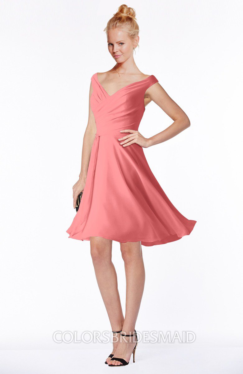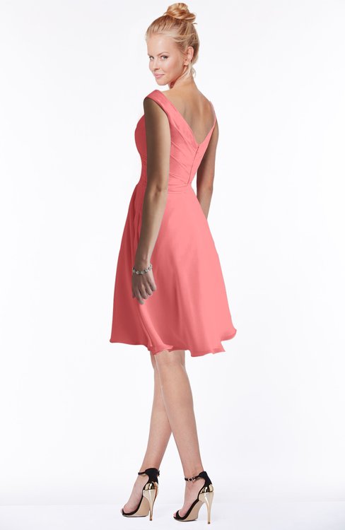 Shell Pink Classic Fit-n-Flare Zip up Chiffon Knee Length Ruching Bridesmaid Dresses