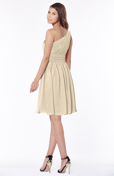 Champagne Classic One Shoulder Sleeveless Chiffon Knee Length Ruching Bridesmaid Dresses