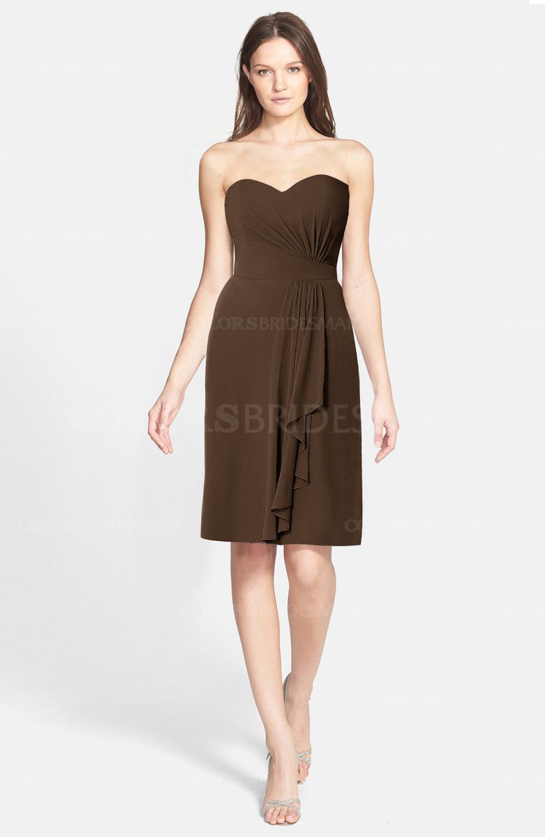 Chocolate Brown Cute Sweetheart Sleeveless Zip up Chiffon Knee Length Bridesmaid Dresses