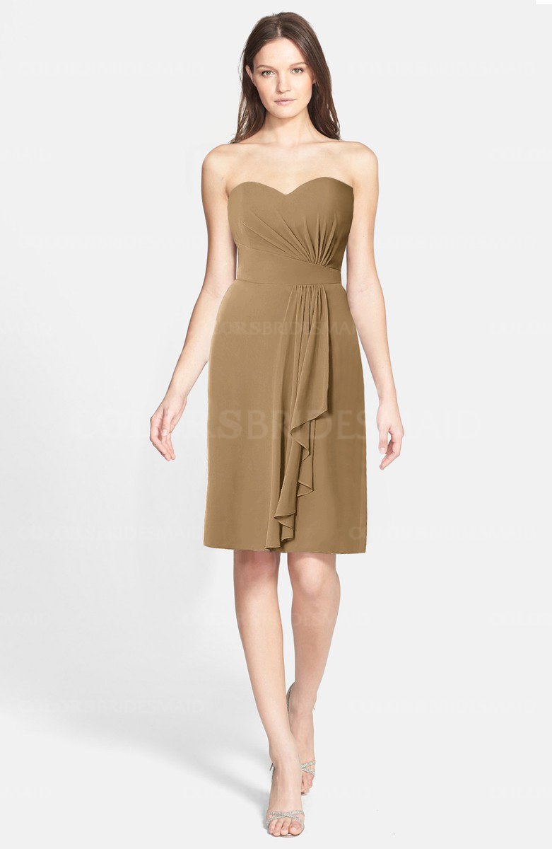 Indian Tan Cute Sweetheart Sleeveless Zip up Chiffon Knee Length Bridesmaid Dresses