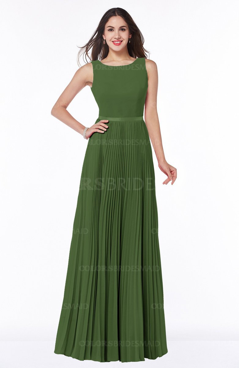 Garden Green Elegant A-line Sleeveless Chiffon Floor Length Pleated Plus Size Bridesmaid Dresses