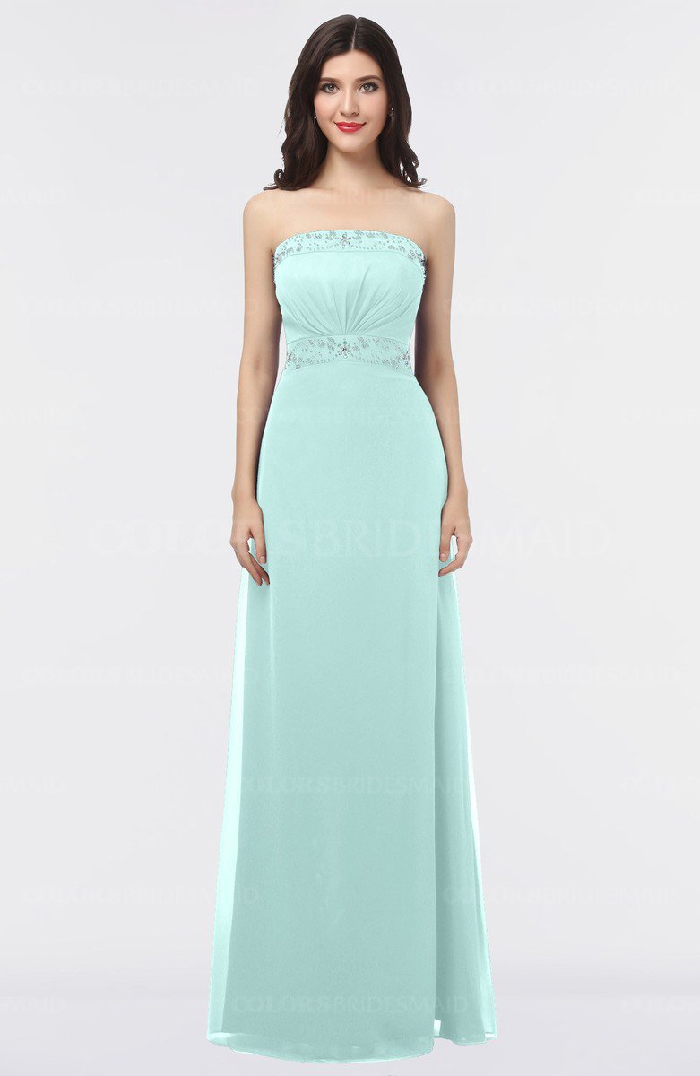 Blue Glass Elegant A-line Strapless Criss-cross Straps Floor Length Appliques Bridesmaid Dresses