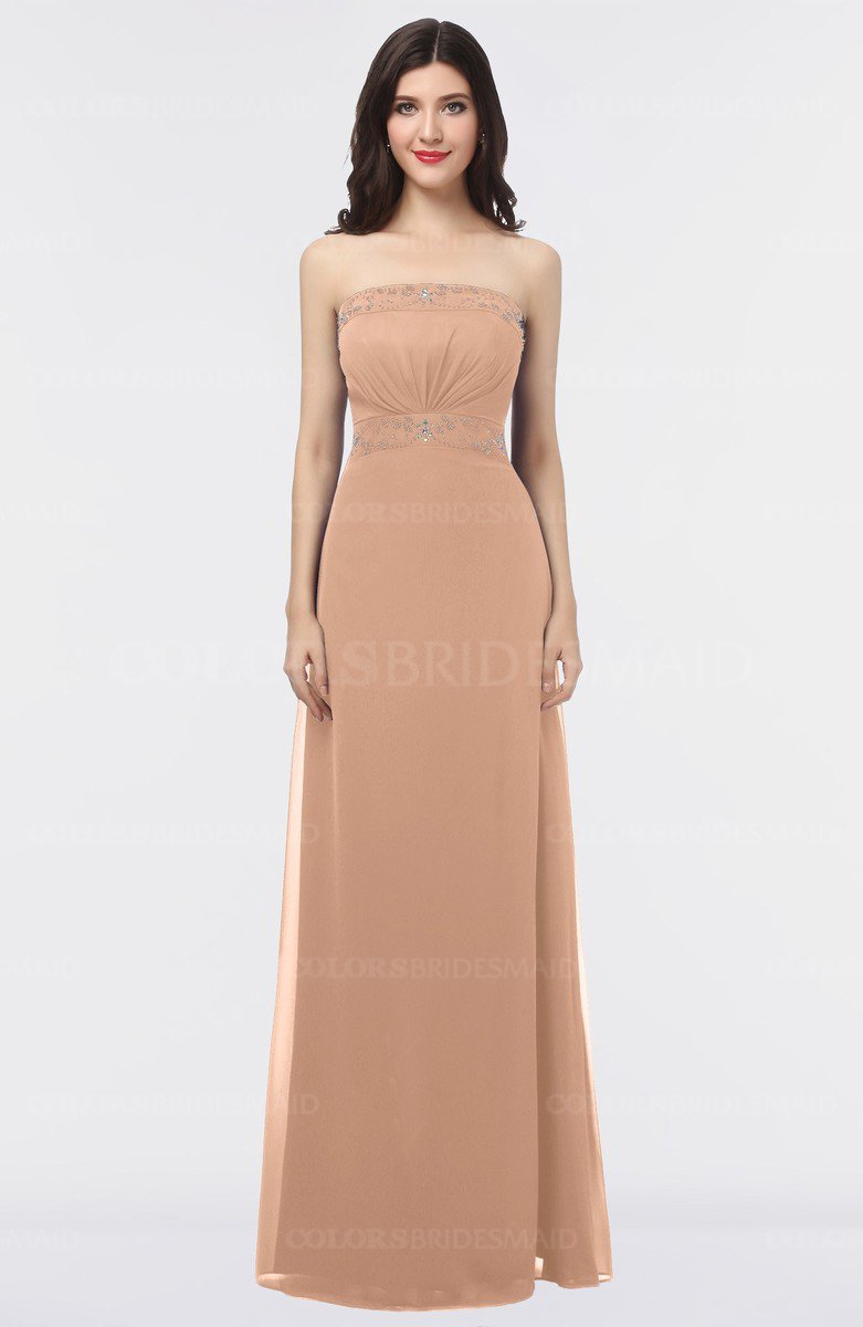 Burnt Orange Elegant A-line Strapless Criss-cross Straps Floor Length Appliques Bridesmaid Dresses