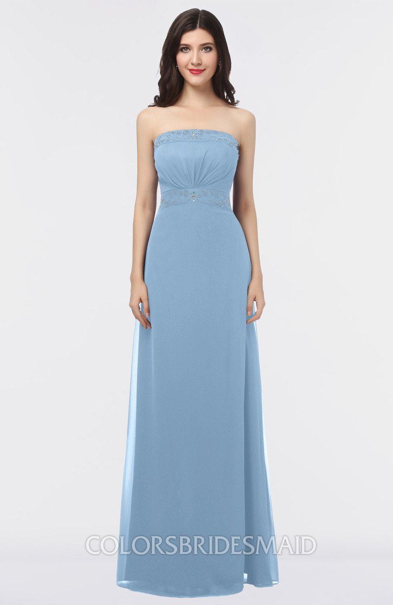 Dusty Blue Elegant A-line Strapless Criss-cross Straps Floor Length Appliques Bridesmaid Dresses