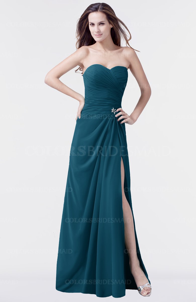 Moroccan Blue Elegant A-line Sweetheart Sleeveless Floor Length Pleated Bridesmaid Dresses
