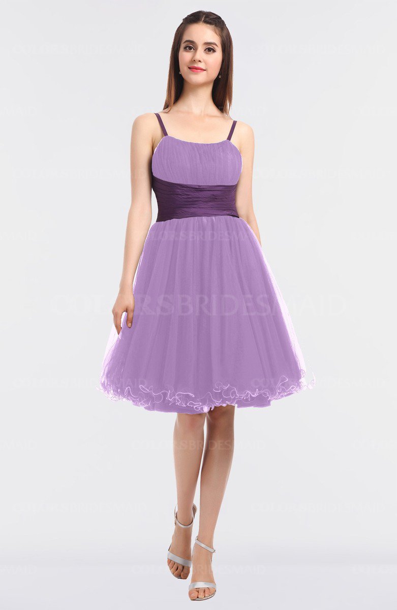 6. ColsBM Ariana Violet Glamorous A-line Jewel Sleeveless Zipper Knee Length Bridesmaid Dresses
