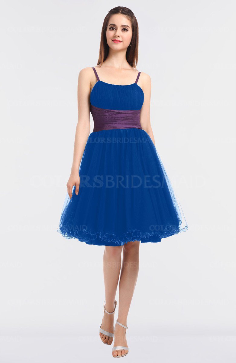 Royal Blue Elegant Ball Gown Sleeveless Zip up Knee Length Ruching Bridesmaid Dresses