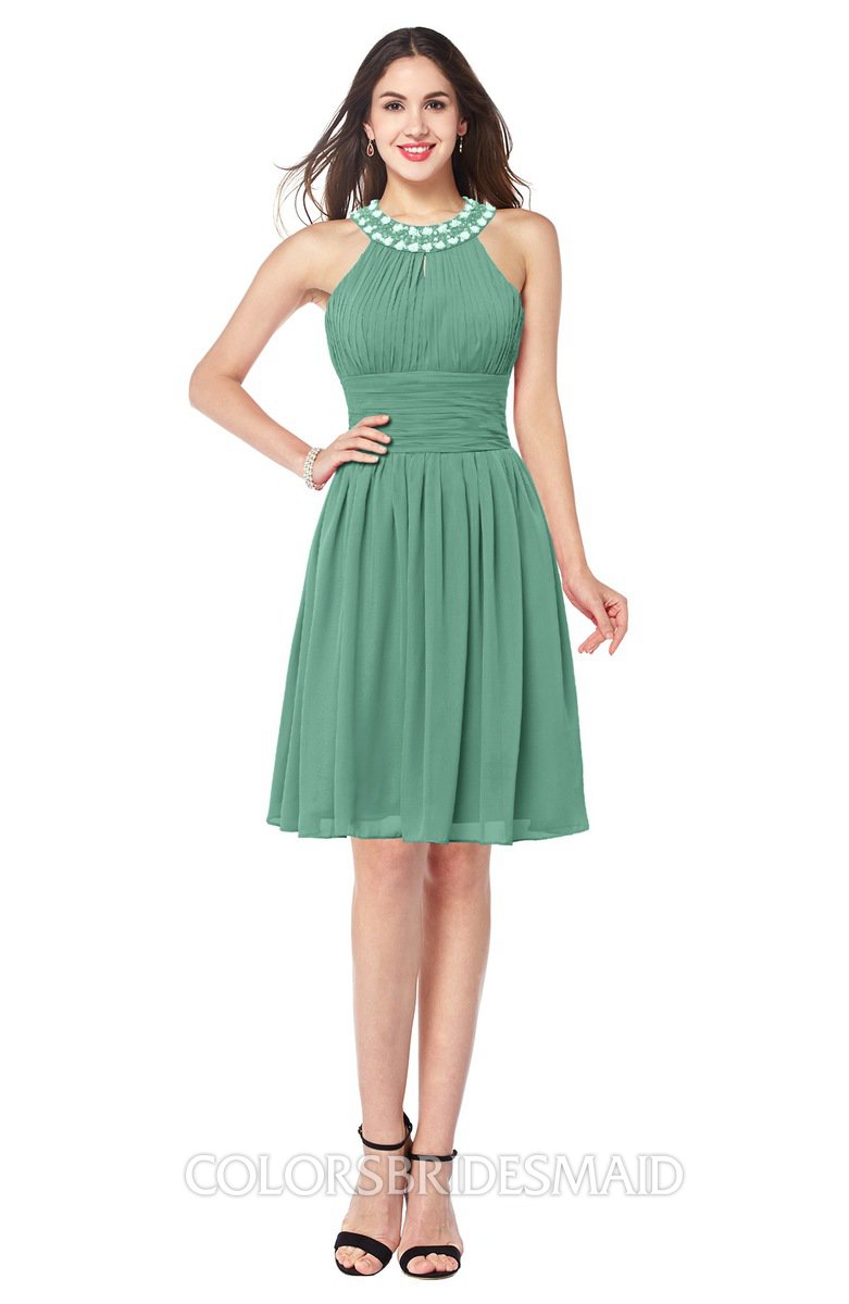 Beryl Green Glamorous A-line Jewel Sleeveless Zipper Knee Length Bridesmaid Dresses